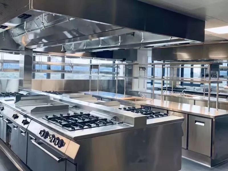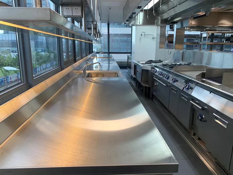 生产前我司安排设计人员在现场详细沟通了各个细节,在烟罩上预留缺口接驳机电管线,并设置了烟罩补板,与炉具上的不锈钢封板连接,在提升了美观同时也避免了燃气管道外露的风险,且外包管道还可以减少灰层堆积和卫生死角,使烟罩和炉具达到最佳使用效果。