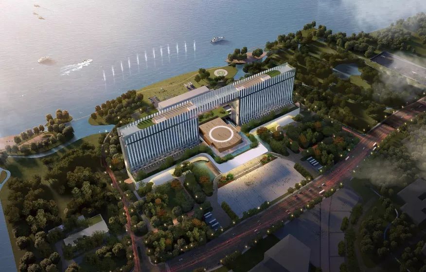 该项目定位为集住宿、会议、餐饮、宴会、休闲于一体的会议中心综合体,总建筑面积约40万平方米,预计2022年年末投入使用,酒店设有客房1518间,8种房型,近百间会议室,9个餐饮区及3个大型宴会厅。