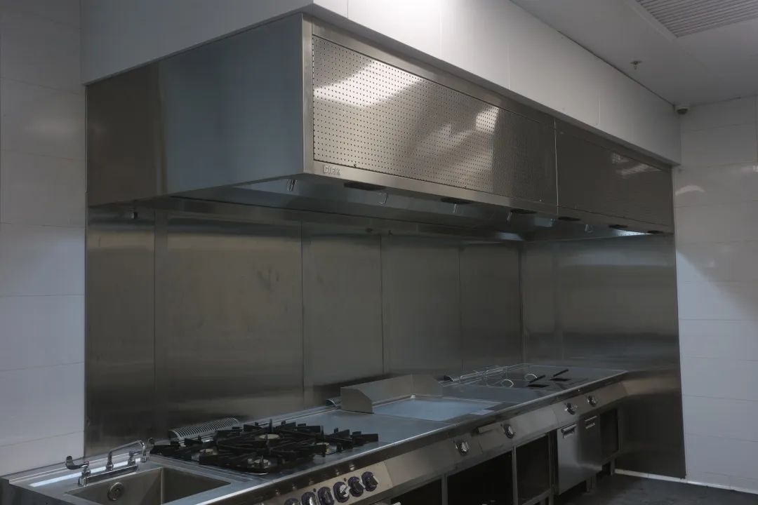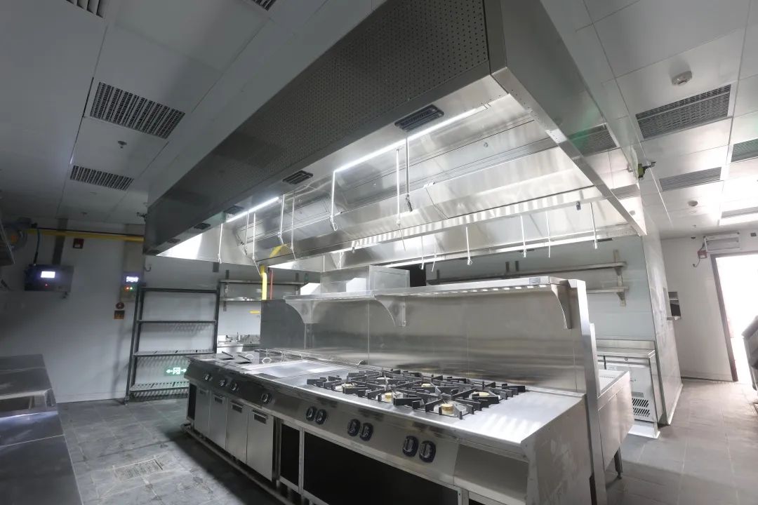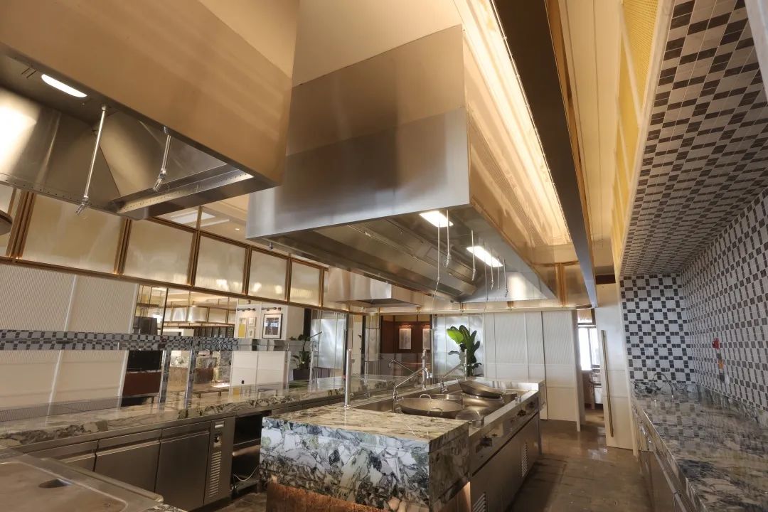 舌尖上的星级用餐体验不仅在于感官上对于食物的色、香、味俱全,也在于整体的就餐环境的营造。除了前场直观的奢华舒适体验,在一般顾客看不到的后厨,肩负不同功能效用的厨房设备,各司其职的工作人员们需要构成一个更加强大和完善的保障供应系统。饕餮大宴在人、设备、空间这个场域里被精心对待,端上每一位食客的餐桌等待味蕾的检验。同样列阵以待的还有我司旗下DIRK®德克商业厨房整体排油烟罩,肩负着近4000平方米的整个厨房系统的油烟收集和排放处理。